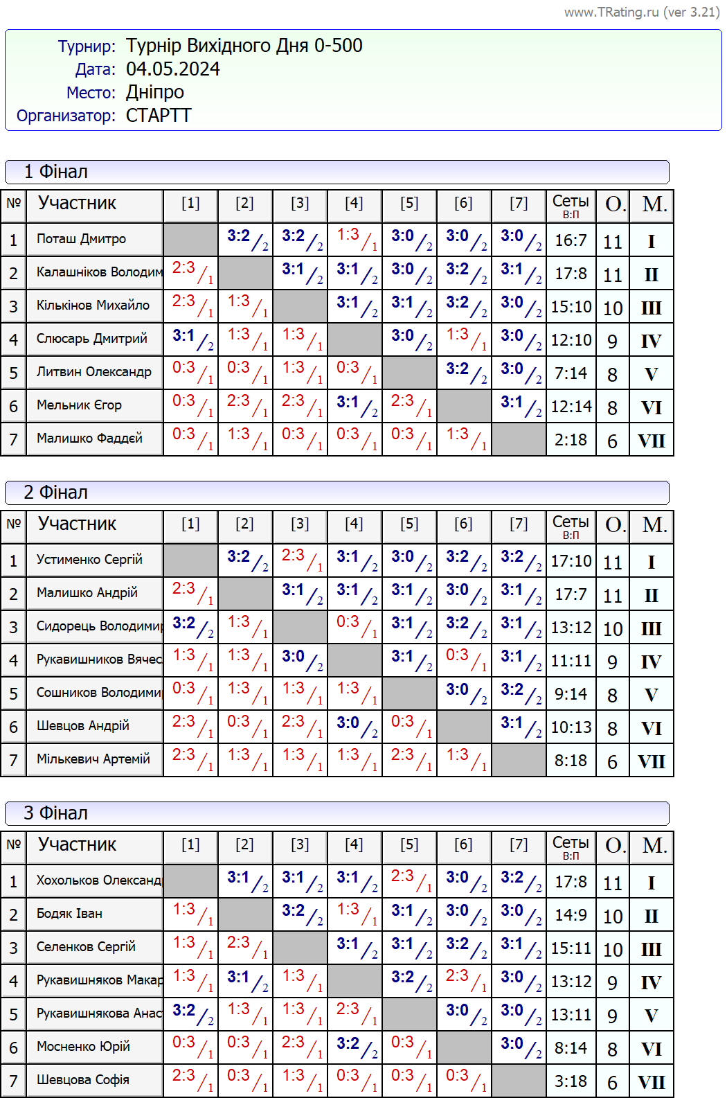 Результати турніру “Вихідного дня 0-500” за 04.05.2024