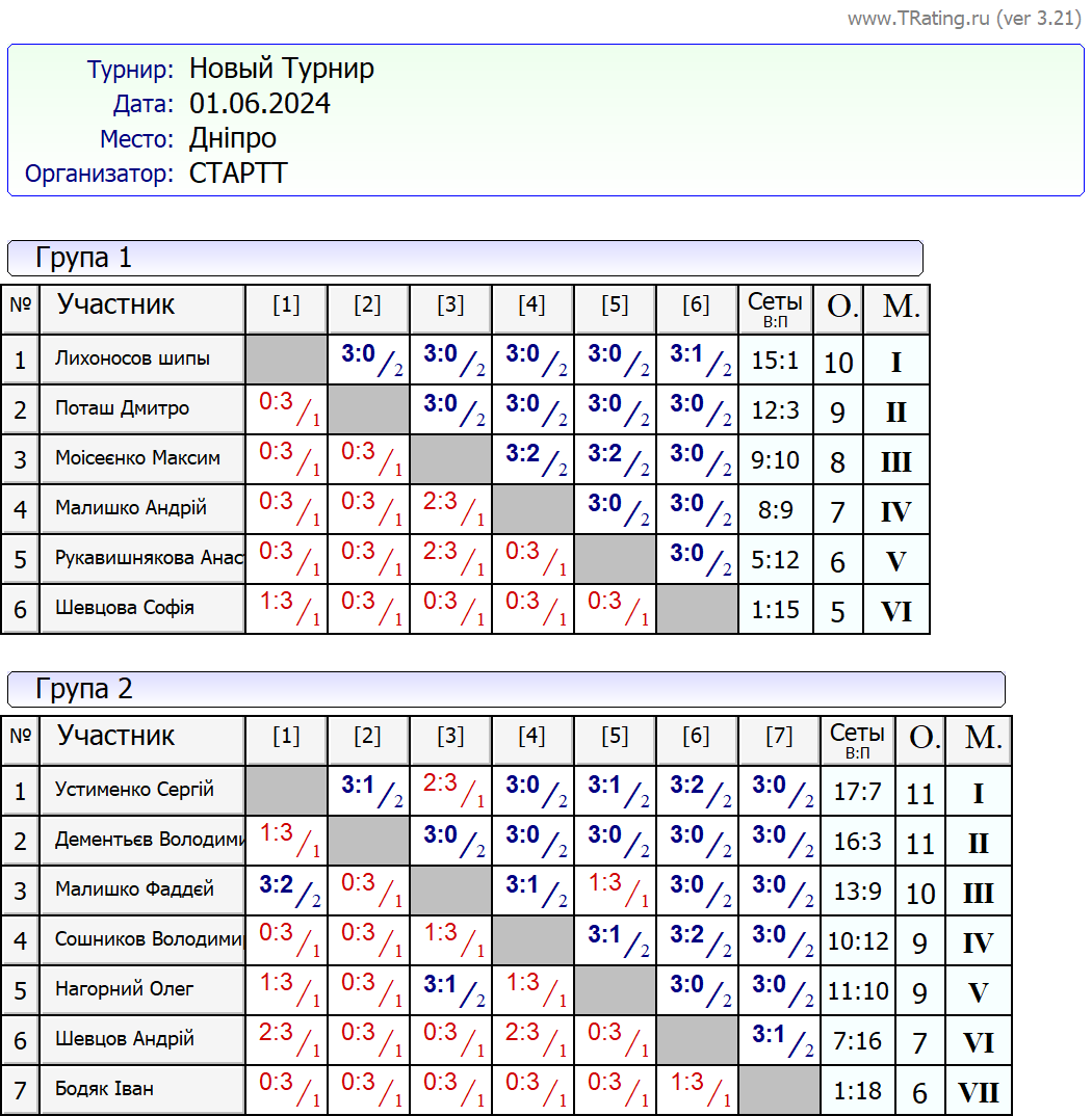 Результати турніру “Вихідного дня 0-500” за 1.06.2024