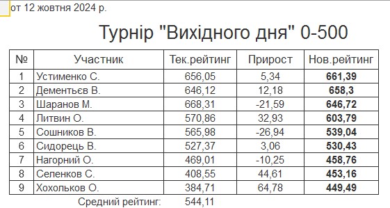 Результати турніру “Вихідного дня 0-500” за 12.10.2024