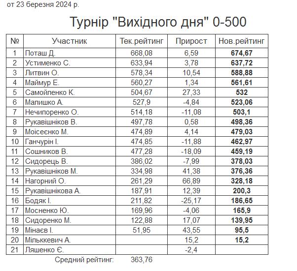 Результати турніру “Вихідного дня 0-500” за 23.03.2024