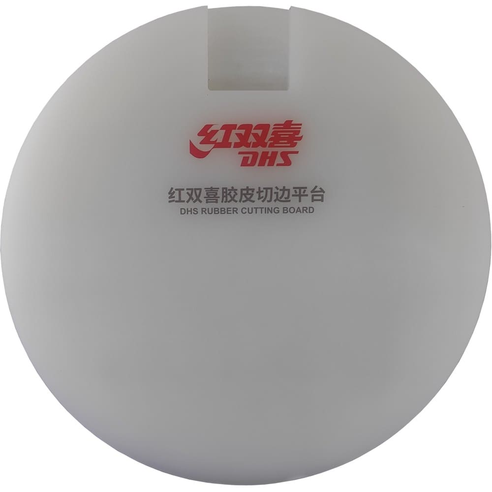 Дошка для обрізки накладок DHS виготовлена з високоякісного і стійкого до пошкоджень матеріалу, який не боїться контакту з ріжучими предметами. Має круглу форму, яка підходить під ігрову лопать будь-якого розміру і спеціальну виїмку для рукоятки ракетки.