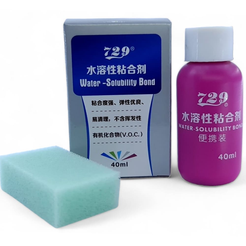 Клей водний 729 40 мл – білий водорозчинний клей для настільного тенісу. Дозволено до застосування організацією WTT (Світовий настільний теніс). Має відмінні зв’язувальні властивості. Еластичний і створює довгий ефект свіжого переклеювання. Густа консистенція дозволяє ощадливо витрачати клей при нанесенні на накладки. Легко знімається із поверхні губки. Економічна та недорога упаковка дозволяє зберегти початкові якості клею на необхідну кількість переклеювань комплекту накладок Як користуватися: – Нанести один тонкий шар на губку накладки, висушити феном або без фена чекати 5-10 хв в сухому приміщенні до зникнення кольору клею. – нанести один шар на дерев’яну основу, висушити феном або без фена чекати 5-10 хв у сухому приміщенні до зникнення кольору клею. – притиснути поверхні, щоб уникнути повітряних порожнин, використовуйте ролер або трубку.