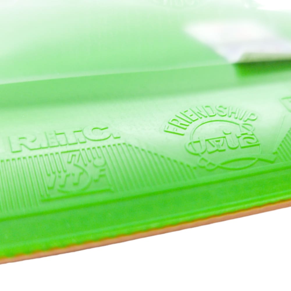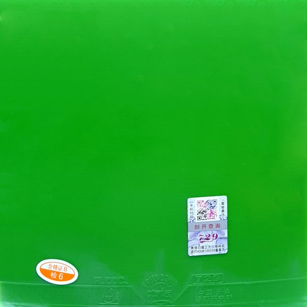 729 Cross General (green rubber) – це та ж сама накладка 729 Cross General, тільки з топшитом зеленого кольору. Універсальна накладка стилю allround. Відмінне співвідношення ціна/якість. Підрізування, накати та контрольна гра є сильними сторонами та відмінною рисою даної накладки. Добре себе показала як на дерев’яних, так і на карбонових основах.