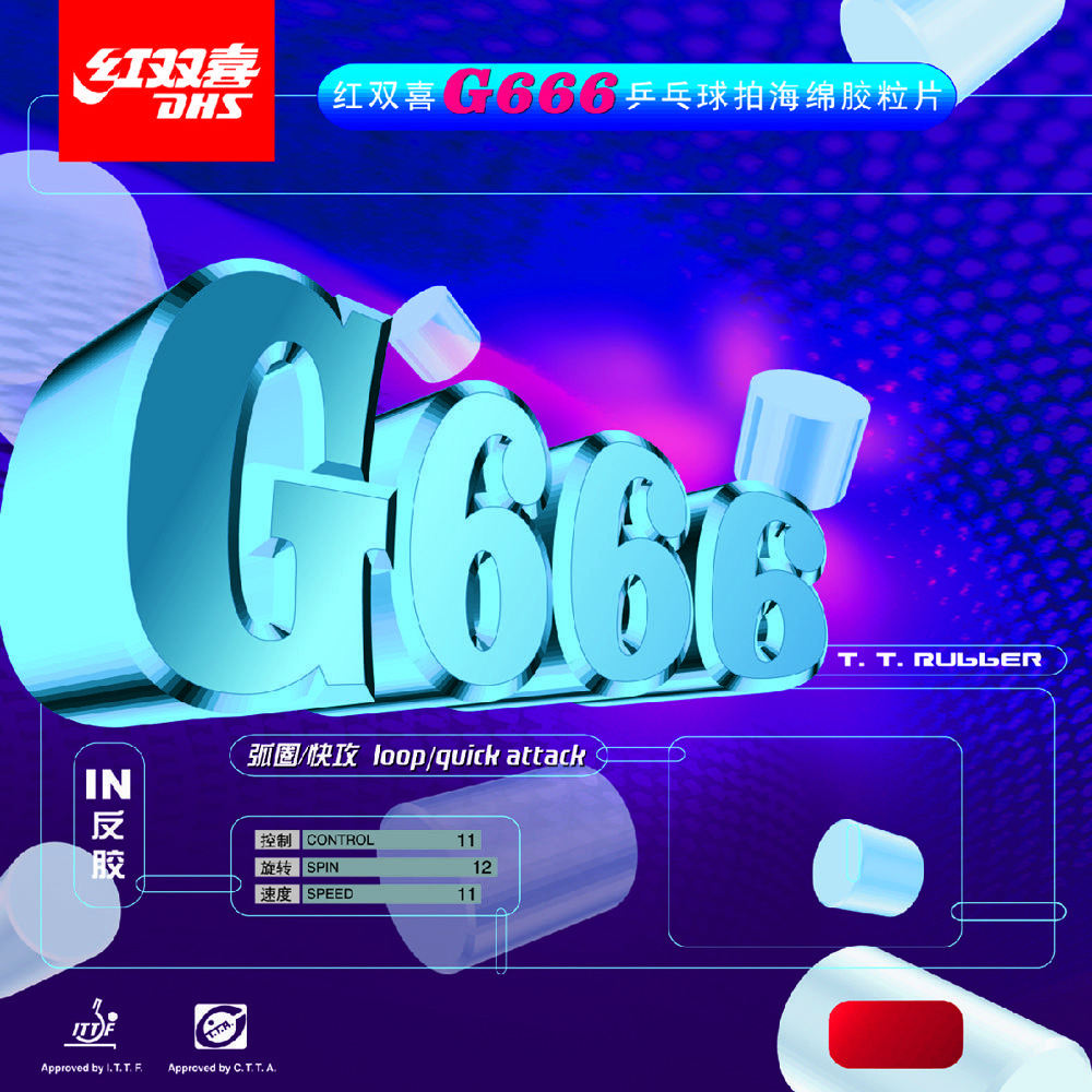 DHS G666 має липку поверхню та пружну губку для активної атакуючої гри. Завдяки особливій молекулярній структурі гуми накладка зберігає клейкість тривалий час. Має хороші показники швидкості та контролю і дозволяє посилати м’яч у потрібну частину столу з необхідним обертанням.