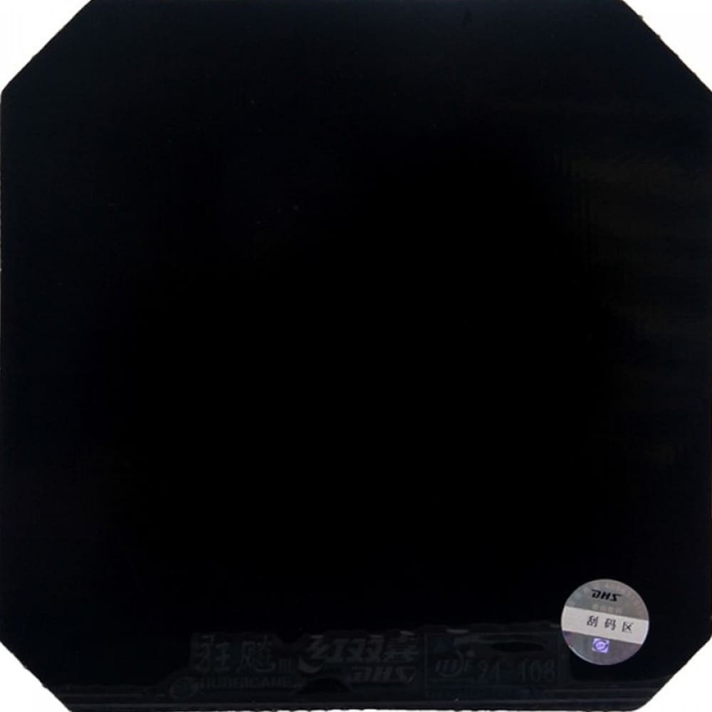 DHS Hurricane 3 – накладка-бестселер та класика серед «липучок», оскільки ігрова поверхня накладки має характерну липкість. У цій версії накладки використовується найм’якша губка жорсткості (37 градусів). Завдяки цьому ця накладка більш контрольна, хоча трохи втрачає в швидкісних показниках. Дозволяє керувати ігровим процесом на свою користь. Ця модель спеціально розроблена для гравців, які надають перевагу утриманню м’яча та не володіють потужною атакою. Накладка збільшує силу удару та надає довгу траєкторію м’ячу при чудовому контролі.