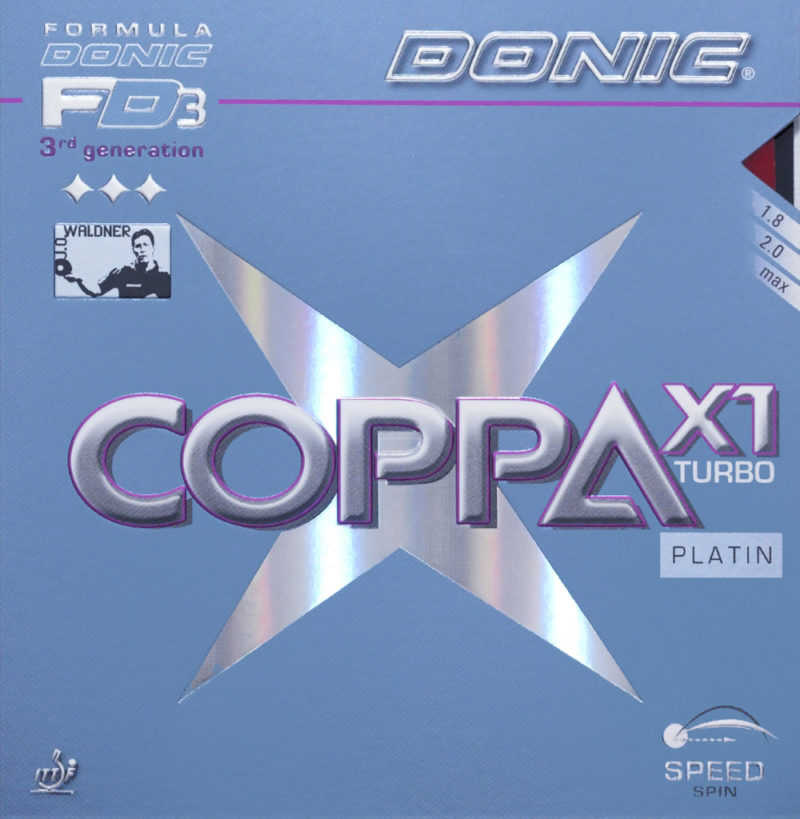 Накладка Coppa X1 Turbo Platin характеризується максимальною швидкістю та обертанням. Найбільш підходить для потужних атак сильними обертаннями біля столу та швидких перекрутів із середньої зони. Нова серія Coppa X дає ще більше швидкості та обертання в порівнянні з попередніми серіями.