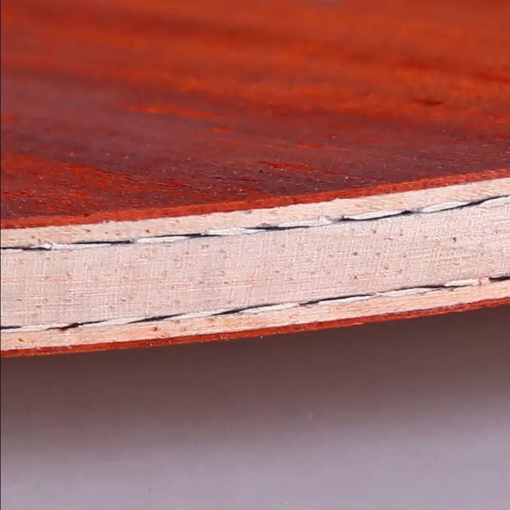 Основа для ракетки 729 Red Sandalwood (Red Wood) 7– нова серія сучасних композитних основ від відомого бренду 729 Friendship. Особливістю є використання зовнішніх шарів із спеціально відібраної жорсткої екзотичної породи деревини ебен та суперсучасного композитного волокна кевлар карбон. Стане відмінним вибором для гравців, які надають перевагу атакуючому стилю у грі, який базується на обертаннях. Прекрасно поєднується з атакуючими накладками як євро-японського типу, так і з класичними китайськими липучками та накладками гібридного типу. Має чудове поєднання якісних сучасних матеріалів та приємної ціни. Має легкий ненав’язливий аромат паленого дерева. Шари: червоний ебен (сандал) + аюс + кевлар-карбон (KLC) + аюс + кевлар-карбон (KLC) + аюс + червоний ебен (сандал).
