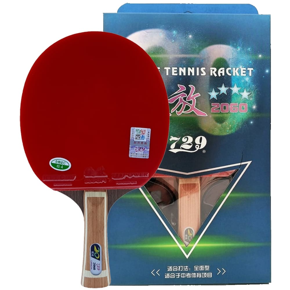 Ракетка 729 2060 рекомендована як для тренувань, так і для змагань. Оснащена семишаровою основою, в якій два шари карбону та п’ять шарів дерева, з гарним відчуттям м’яча та накладками 729 Bloom Power червоного кольору та 729 Sky Wing чорного кольору. Сторона ракетки з накладкою 729 Bloom Power є швидшою і потужнішою, а сторона з 729 Sky Wing – контрольною та обертальною. Таке поєднання компонентів забезпечує відмінні швидкісні показники, хороший контроль та досить непогане відчуття м’яча. Відмінно себе покаже із середньої дистанції, а також у короткій грі. Стане оптимальним вибором для гравців універсального стилю гри з упором на атаку. Завдяки наявності карбону в основі ця ракетка більш швидкісна і все ж таки більше підійде для атакуючих гравців, але з досить плавним переходом на захист при необхідності. Поставляється з чохлом.