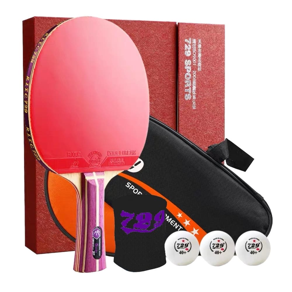 Ракетка 729 5 Star – чудово збалансована за всіма показниками ракетка ракетка для атакуючої гри з потужними обертаннями. Оснащена семишарової швидкісною основою та накладками 729 Cream (червона) та 729-5 (чорна). Ефективна із середньої дистанції. Оснащена FL рукояткою, яка зручно лежить у руці і не вислизає. Відмінний варіант для подарунка завдяки коричневій твердій коробці, що закривається на магніт. У комплекті йде фірмовий чохол 729 на всю поверхню ракетки, три м’ячі 729 1*, фірмовий напульсник з фіолетовим логотипом.