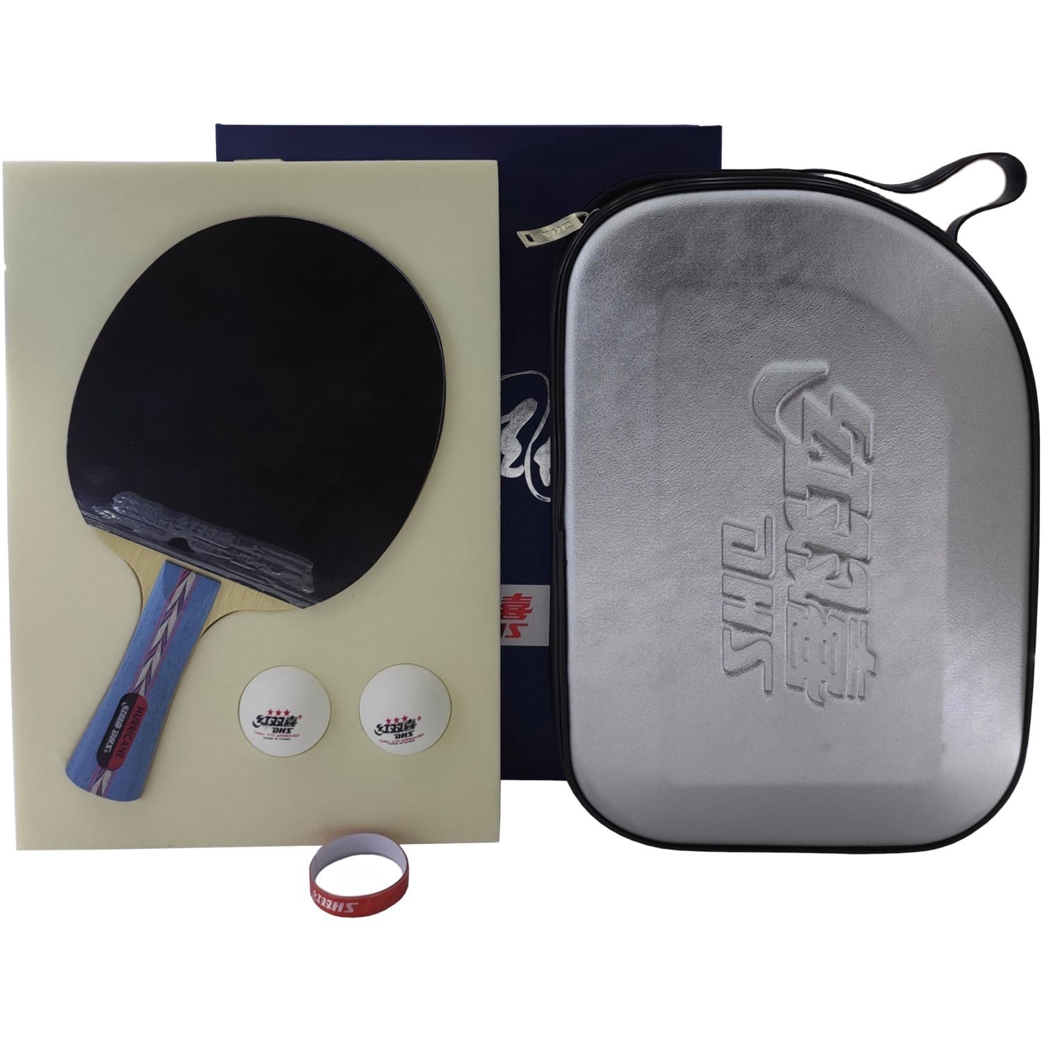 Ракетка для настільного тенісу DHS NO.2 складається з власне ракетки, фірмового чохла DHS, двох м’ячів та торцевої стрічки. Має гарний момент, що крутить, і середні показники швидкості. Поставляється у міцній подарунковій коробці. У ракетці використовується п’ятишарова дерев’яна основа типу allround з FL рукояткою. А також накладка Hurricane 3 на синій губці, яка збільшує силу удару та надає довгу траєкторію м’ячу при відмінному контролі. І накладка DHS G555 на помаранчевій губці, яка створена для контратакуючої або агресивної атакуючої гри з використанням блоків та сильного обертального моменту. У фірмовому чохлі, виготовленому з дуже міцного, зносостійкого матеріалу, довговічний, ракетка надійно захищена від механічних пошкоджень, забруднень і сонячних променів. У комплектацію набору входять: – Ракетка; – чохол для ракетки із міцного зносостійкого матеріалу; – два м’ячі DHS Cell-Free Dual 40+ мм 3*; – Торцева стрічка.